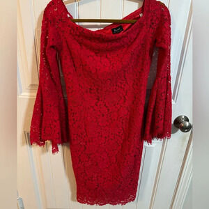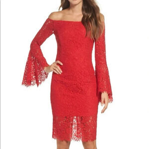 Bardot Revolve Solange Corded Red Lace Sheath Dress