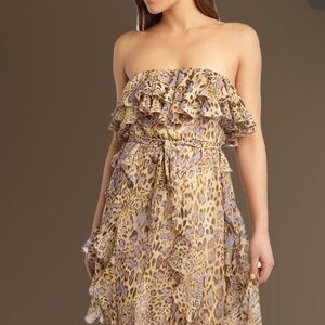 Poly Blend. Fully lined. Elastic neckline with flounce overlay. Detachable waist tie. Ruffle detail throughout. Neckline to hem measures approx 47 in length Imported. Safari chic