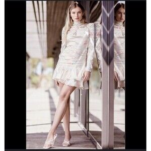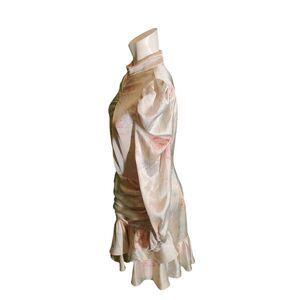 Bardot Sharna 80s inspired Satin Floral Ruched Puff Sleeve Mini Dress sz 8