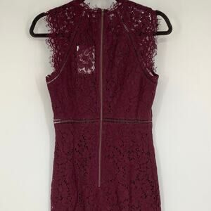 Bardot Size S Burgundy Wine Lace Panel Sheath Dress High Neck Sleeveless I14-11