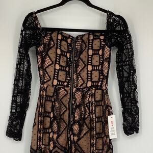 Bardot Size XS Black Zendaya Mini Lace Dress Off Shoulder Long Sleeve OS18-12
