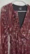 Chic Bardot dress with a metallic plum finish. Features long sleeves and a wrap style. Ideal for stylish outings.