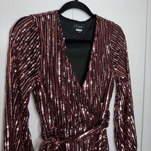 Bardot Stripe Sequin Bellissa Long Sleeve Dress - Small