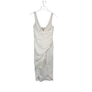 A soaring sky-high front slit and tonal underwiring define the sultry appeal of this sleeveless dress cut to a midi length.
