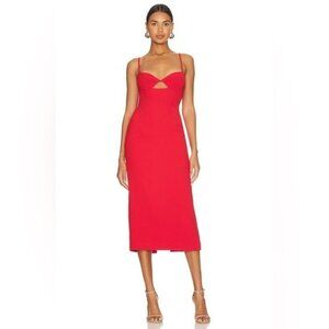 Bardot Vienna Fire Red Midi Dress Size 10 With Cutout Detail Adjustable Straps