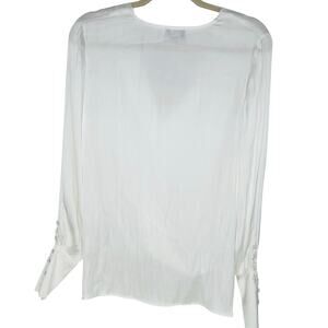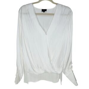 Bardot White Satin Faux Wrap Blouse | V-Neck | Long Sleeve | Size 6 / Small