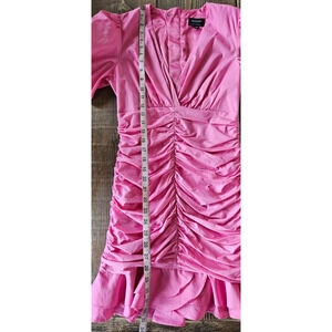 Bardot Women The Amie Mini Dress - Size Small - Candy Pink - Ruched - Short Puff Sleeve - V Neck - Ruffle Hem - Party - Back Zip - Preppy - Barbiecore