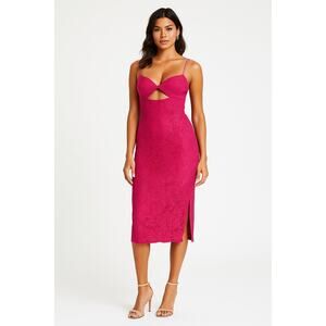Bardot Women’s Dress 12 Vanna Pink Lace Cutout Midi Cocktail Party Evening