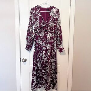 Bardot Women’s Jolie Floral Print Lattice Trim Satin Midi Dress Size 6/Small
