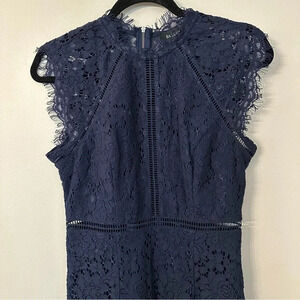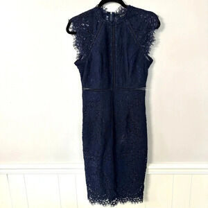 Bardot Women's Lace Sleeveless Navy Mock Neck Zip-up Dress Size 2, XS NWOT