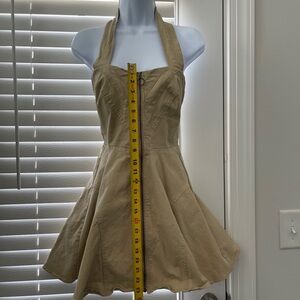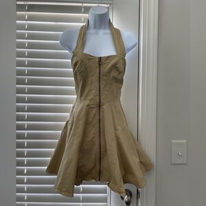 Chic Tan mini dress by Bardot. Features a stylish halter neckline.