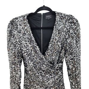 Bardot Womens Sequin Sparkle Dress Sz S Wrap Bodycon Mini Silver Sexy Cocktail