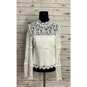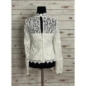 Bardot X REVOLVE Sansa white mock neck floral lace flared sleeve top Size 4