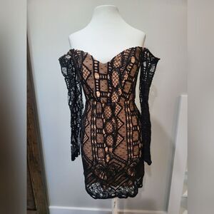 Bardot Zendaya Mini Lace Dress In Black size Medium NWT