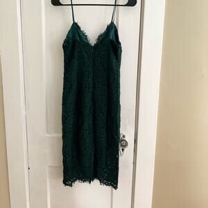Bardot lace crochet holiday dress worn once Christmas cocktail green wedding