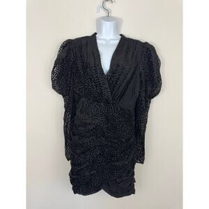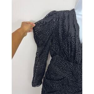 Bardot x Revolve Black Polka Dot Velvet Ruched Puff Sleeve Mini Dress Size 8