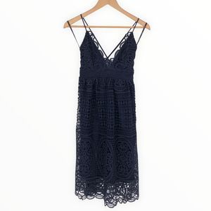 Bardot French Navy Lace Strappy Back Knee Length Dress size 6/Small