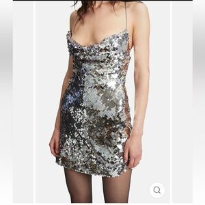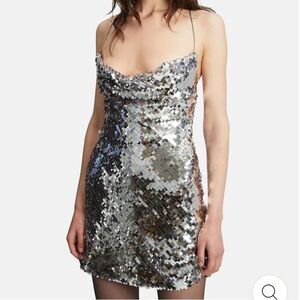 Bardot Shai Silver Sequin Embellished Mini Dress strappy metallic NWT 12 XXL