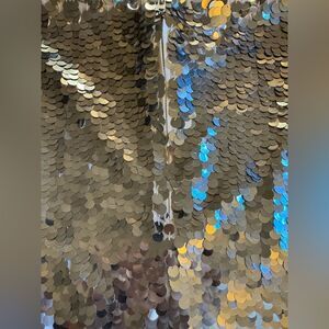 Preowned- worn gently but has a few missing sequin right by the back zipper (not noticeable unless looking very closeup)