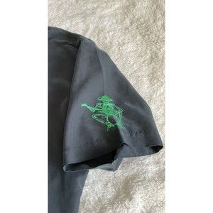 Bare Bones Guitar Day Of The Dead Skeletons Short Sleeve Button Down Shirt Lg. Cute button down just in time for Halloween. Skeletons playing guitar. Embroidered skeletons **small stain on shirt no that noticeable. See last picture. This seller reserves the right to change shipping mode and carrier as needed. Thank you. E07-17