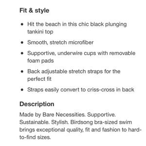 Bare Necessities Birdsong Women’s Plus Size Underwire Tankini Top Onyx Black New with Tags