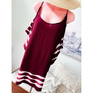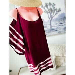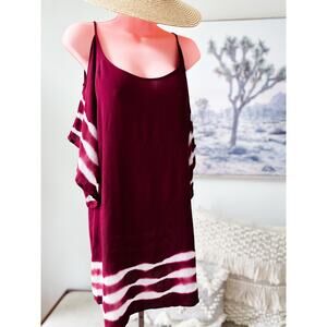Let the breeze dance with you in this flowy, shoulder-baring dress, dyed in rich wine tones with airy white waves. The gauzy, lightweight fabric floats effortlessly over the body, while wide draped sleeves and a relaxed silhouette bring a whisper of movement to every step. With its cold shoulder cut and easy, slip-on shape, it’s the perfect piece for beachside wanders, barefoot mornings, or golden hour strolls. As easygoing as a breeze and as striking as a sunset.