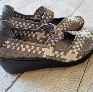 Bare Trap Ursula Gray White Weaved Mary Jane Comfort Wedge •Size 7.5•