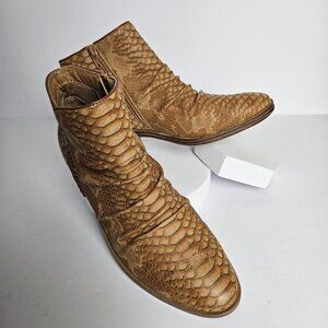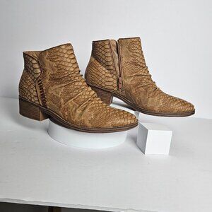 Bare Traps Boots Low Heel Cut Meisha Brown Booties 8M BOHO CHIC Snake Design