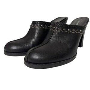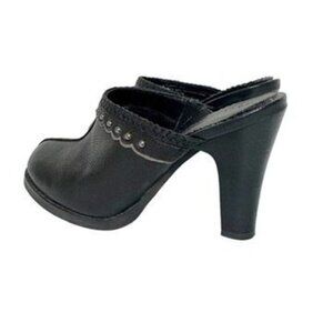 Bare Traps Expert Black Leather Slip On Mules High Heel Clog Studs Size 6