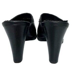 Bare Traps Expert Black Leather Mules Heels Women's Size 6