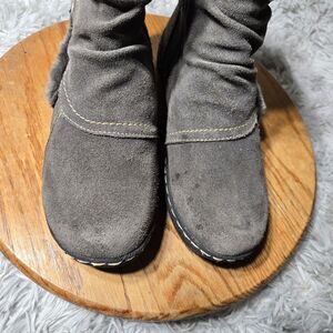 Bare Traps Gray Leather Boots Womens Size 9M Extreme Faux Fur Lined Side Zip Up