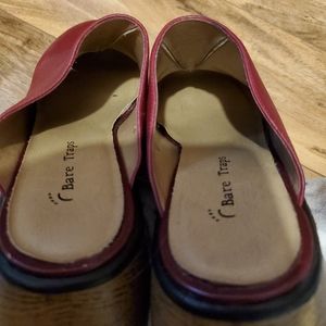 Bare Traps red leather Pixie slip on clogs in very good condition. There is a wear mark on front of left shoe please review picture.