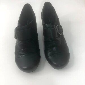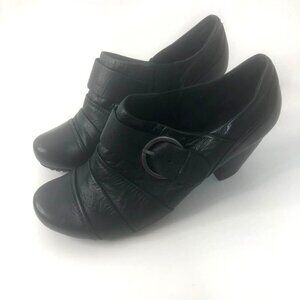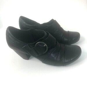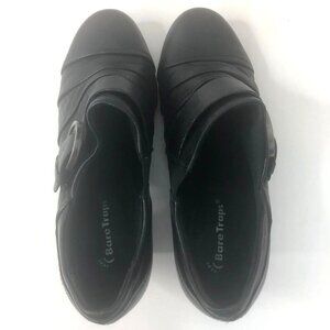 Bare Traps Tasha Womens Black Leather Heeled Booties Size 5 1/2 Slip Ons Buckles