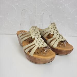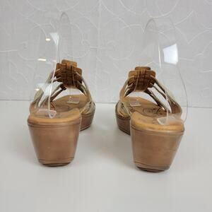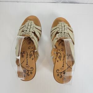 Bare Traps Womens Sandals Size 6.5 Brown Leather Slip-On Strappy Wedge Heels