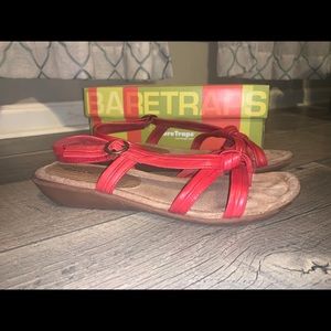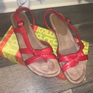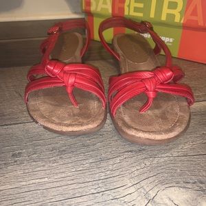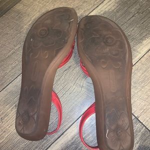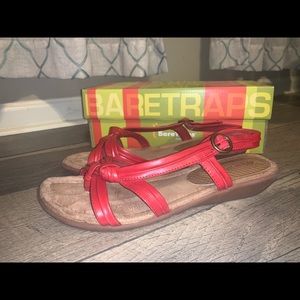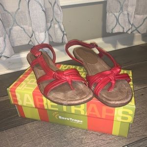 Red color bare trap sandals. In great condition. Still lord of life left. Comes in original box. Size 9.