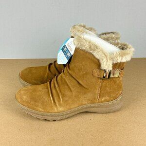 BareTraps Avita Suede Faux Fur Ankle Boots Womens 8 Tan Side Zip Weatherproof