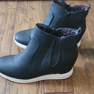 BareTraps Black Ankle Boots with White Soles, Size 9