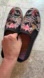 Experience the perfect blend of style and comfort with BareTraps Flats, featuring a striking black base adorned with pink floral embroidery. These slip-on shoes boast a flat sole and a velvet-like finish, making them ideal for both casual and dressy occasions. The symmetrical design adds a touch of elegance to your everyday look. Good/great preowned condition.