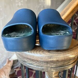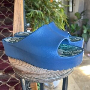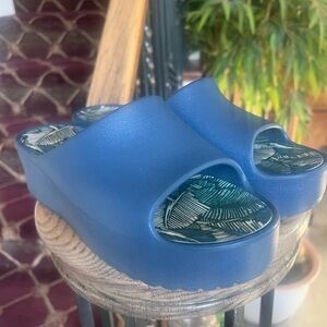 BareTraps Botanical Leaf Pattern Wedge Slide-on Sandals in navy. Excellent 9