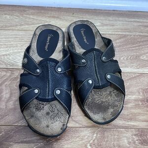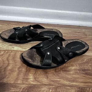 BareTraps Electra Sandals Size 10M Black Comfort Slip Gladiator Retro Leather