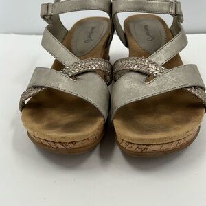 BareTraps Farah Wedge Heel Platform Sandals Silver Metallic Gray Woven Cork 11