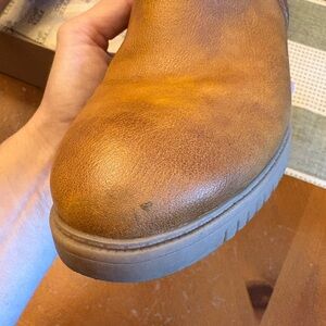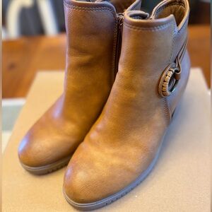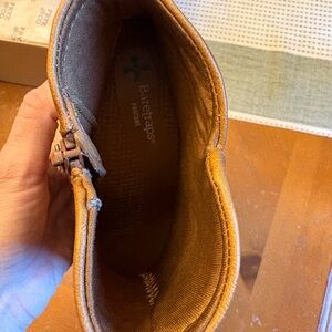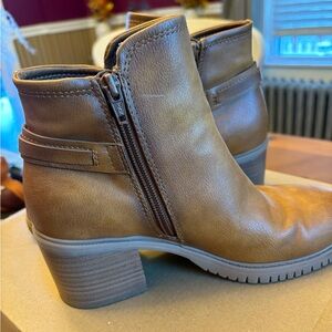 Stylish tan ankle boots by BareTraps. Perfect for versatile wear. Excellent condition! Two tiny spots as shown in photos. Barley visible. Accepting offers.