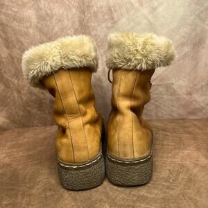 Condition- fair, please note there is discoloration on the front foot areas, and notable peeling under faux fur cuff (can not be seen when being worn). see photos for  general wear/condition & message with any questions.