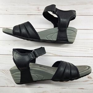 BareTraps Womens Boland Black Ankle Strap Open Toe Wedge Sandals Size 11