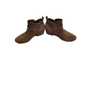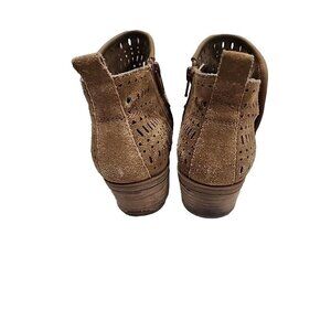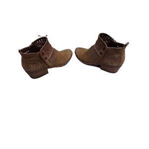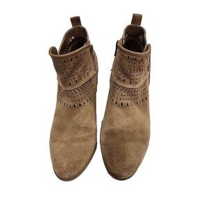 BareTraps Womens Greta Ankle Boots Tan Sz 7 M Suede Zip Snap Block Heel Bootie
