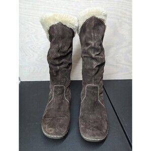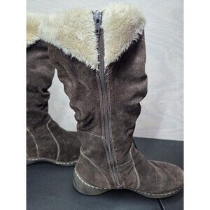 BareTraps Women's SZ 11 Esha Suede Leather Boots Zip Up Brown Faux Fur Lined