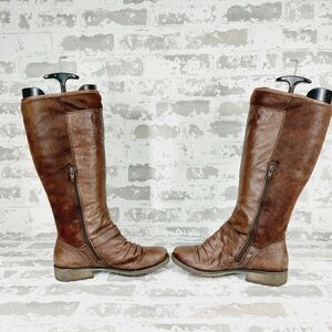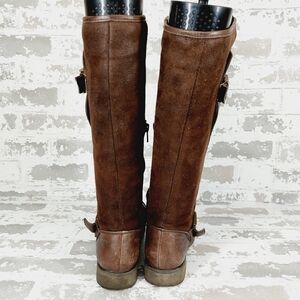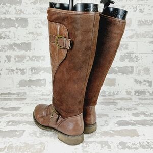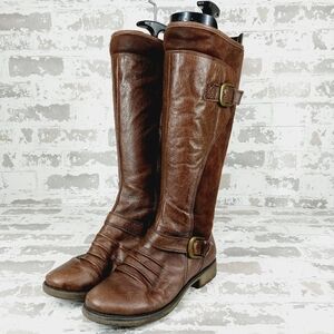 BareTraps Women's Saydo Brown Leather Buckle Knee High Boots T360