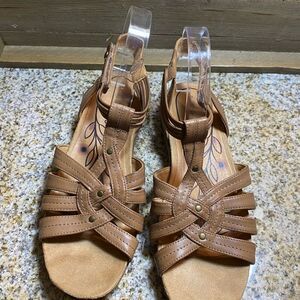 Baretraps Brown sandals Sling back w buckles Camel brown color Sz 10 Great preloved condition
