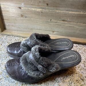 BareTraps slip on fur mule clogs