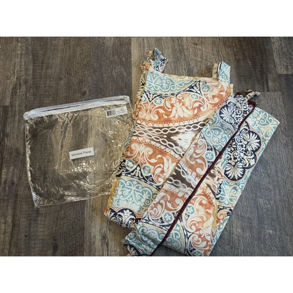 Barefoot Bungalow Olympia Curtain 2 Panels With Tie Backs. 42” X84. Excellent